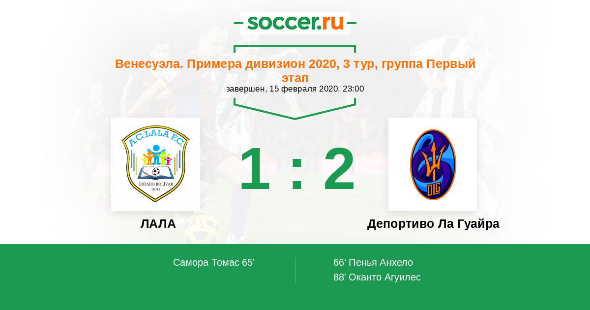 Протокол матча ЛАЛА против Депортиво Ла Гуайра