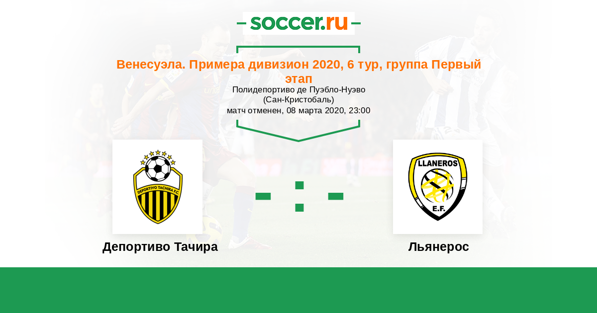 Венесуэла. Примера дивизион 20.10.2007 Льянерос Логотип Льянерос (Гуанаре) 1:1 Логотип футбольный клуб Депортиво Тачира (Сан-Кристобаль) Депортиво Тачира