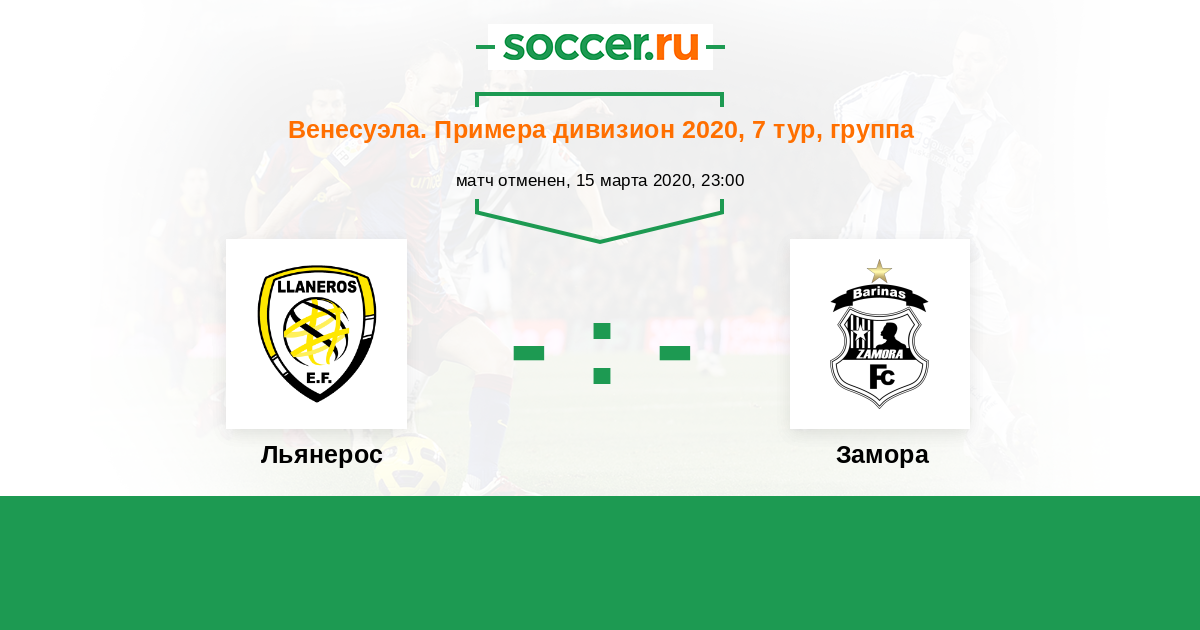 Венесуэла. Примера дивизион 27.03.2019 Замора Логотип футбольный клуб Замора (Баринас) 3:0 Логотип Льянерос (Гуанаре) Льянерос