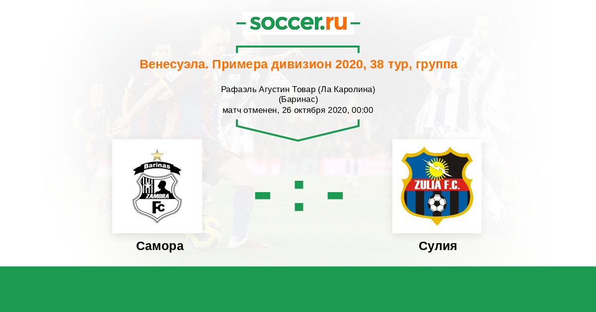 Венесуэла. Примера дивизион 26.07.2019 Сулия Логотип футбольный клуб Сулия (Маракайбо) 1:0 Логотип футбольный клуб Замора (Баринас) Замора