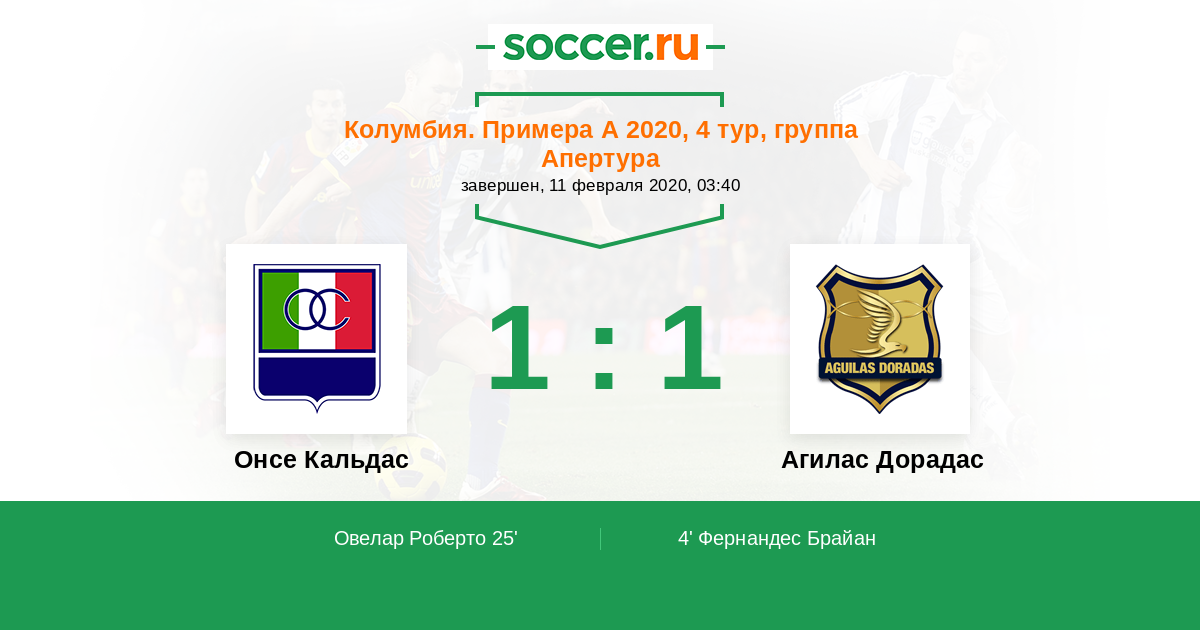 Протокол матча Онсе Кальдас против Агилас Дорадас
