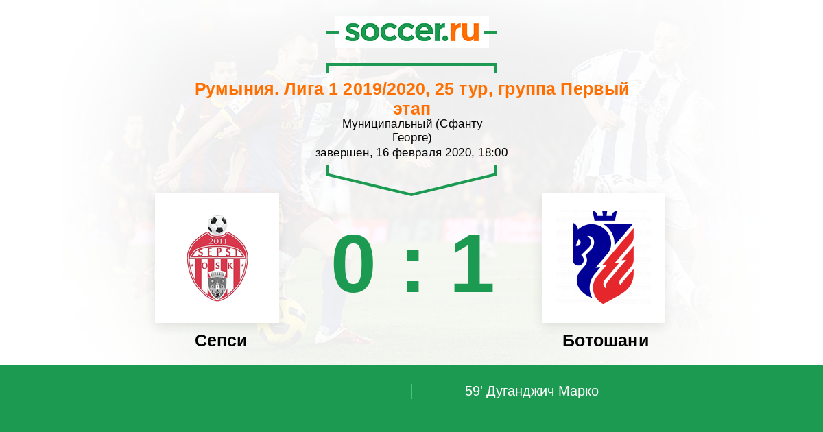 Протокол матча Сепси против Ботошани