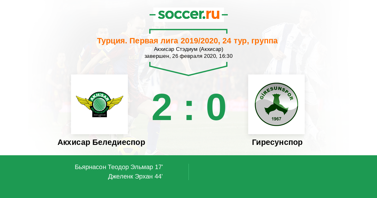 Протокол матча Акхисар Беледиеспор против Гиресунспор