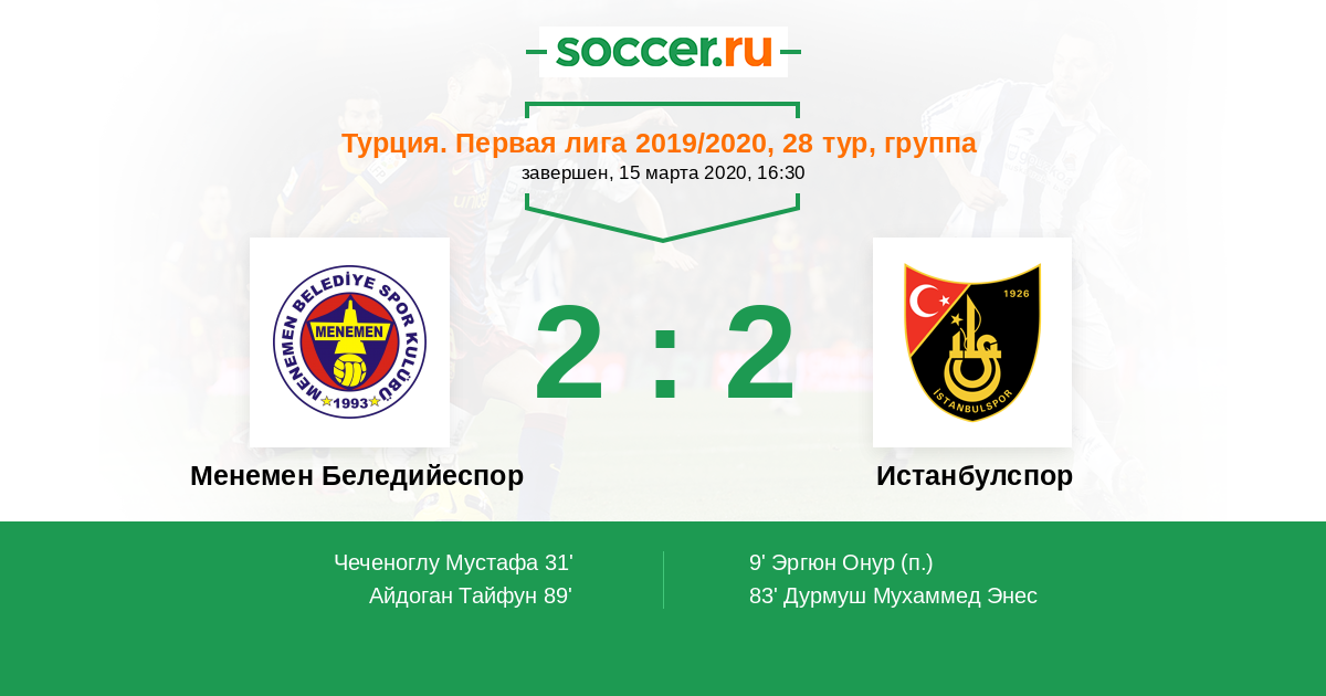 Протокол матча Менемен Беледийеспор против Истанбулспор