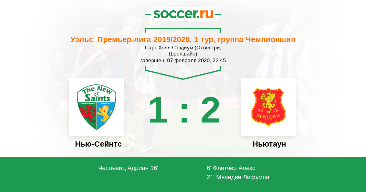 Протокол матча Нью-Сейнтс против Ньютаун
