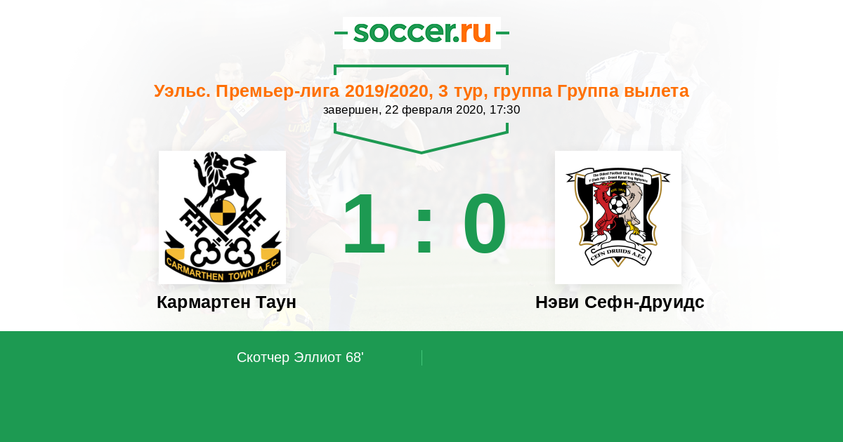 Протокол матча Кармартен Таун против Нэви Сефн-Друидс