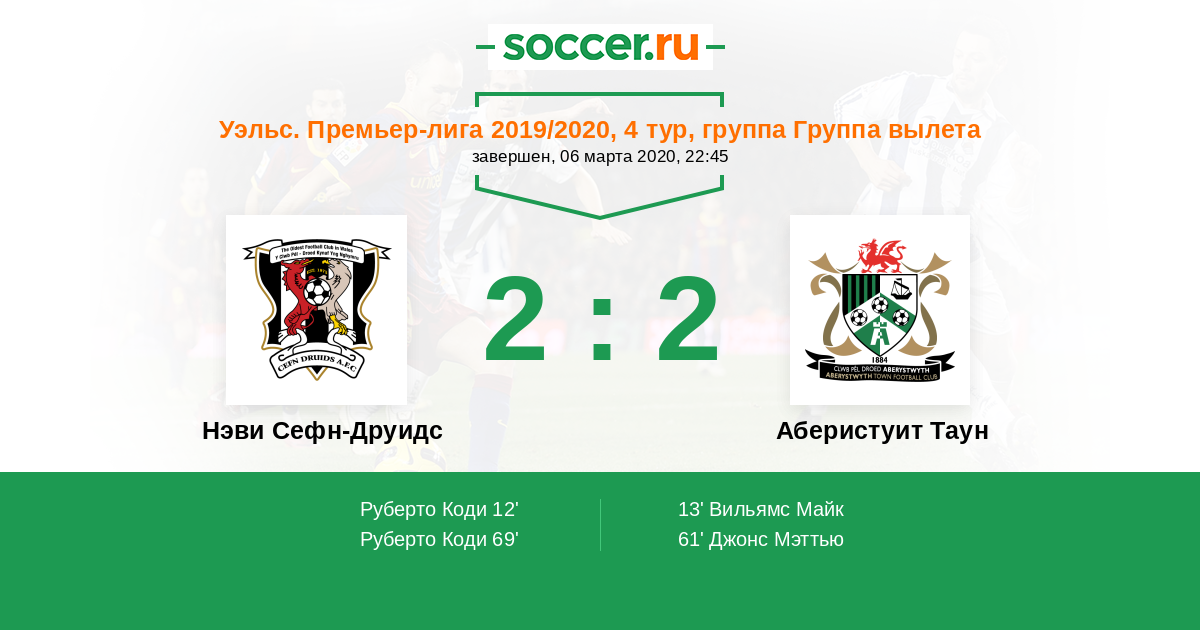 Протокол матча Нэви Сефн-Друидс против Аберистуит Таун