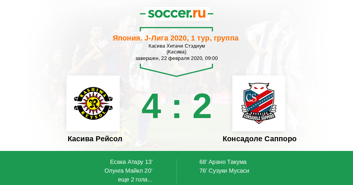 Протокол матча Касива Рейсол против Консадоле Саппоро