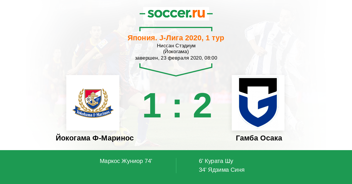 74' (1:2) Маркос Жуниор (9) (Огихара Такахиро (6))