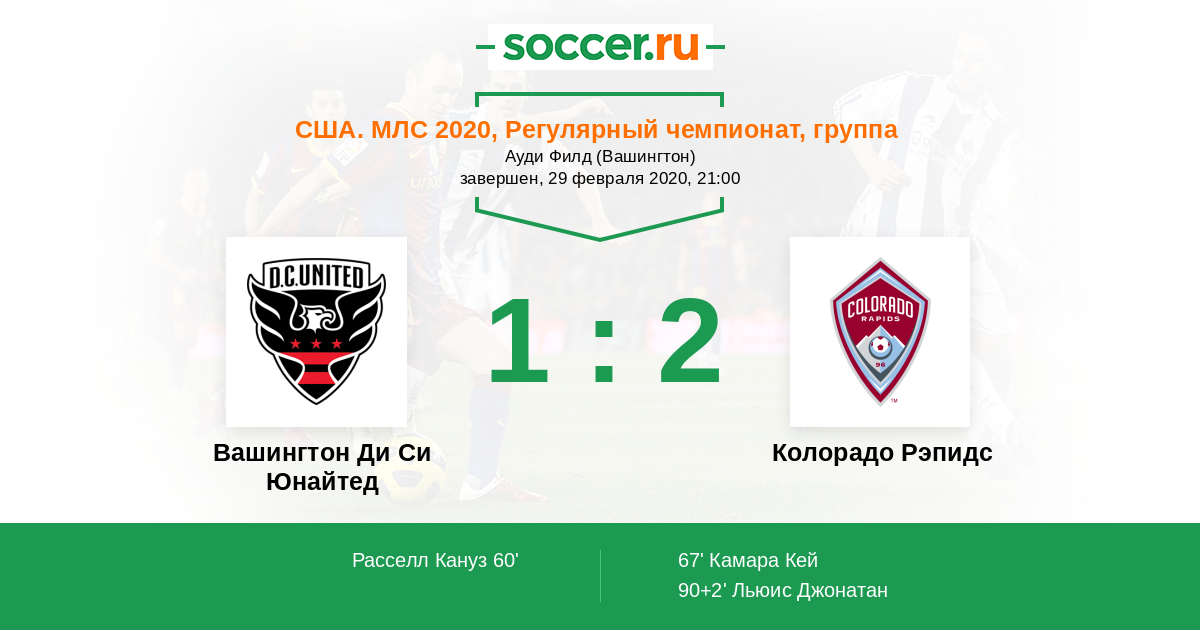 Протокол матча Вашингтон Ди Си Юнайтед против Колорадо Рэпидс