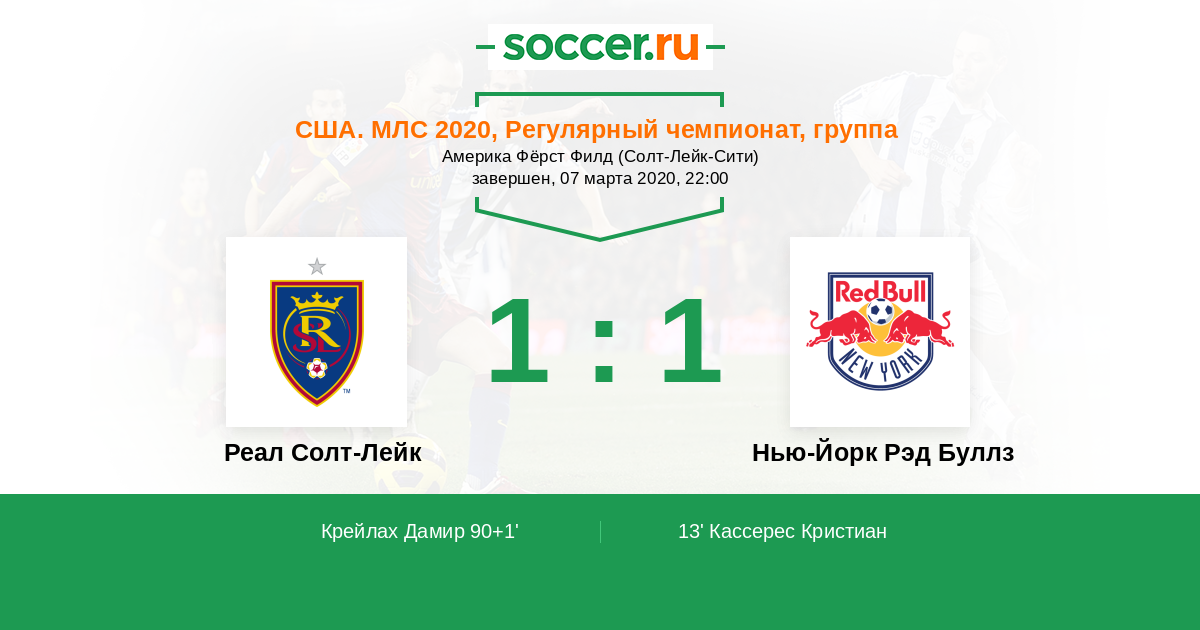 Протокол матча Реал Солт-Лейк против Нью-Йорк Рэд Буллз