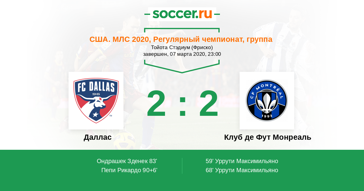 Протокол матча Даллас против Клуб де Фут Монреаль