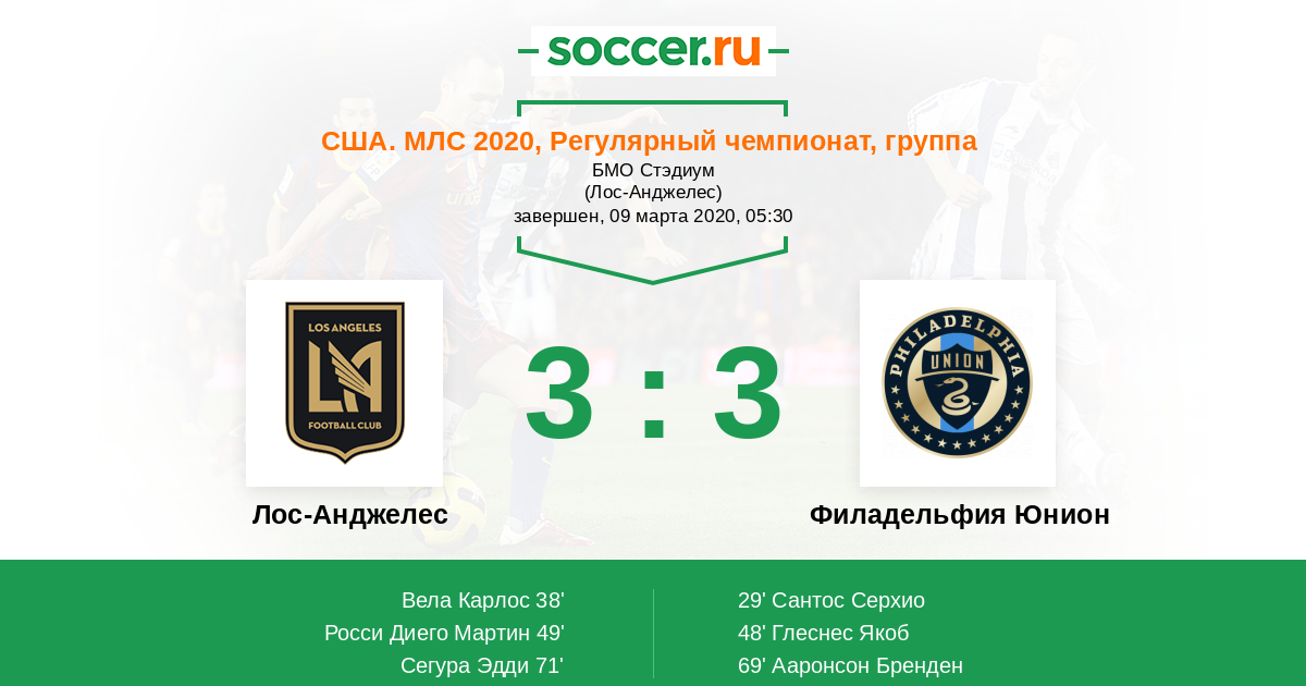 Протокол матча Лос-Анджелес против Филадельфия Юнион