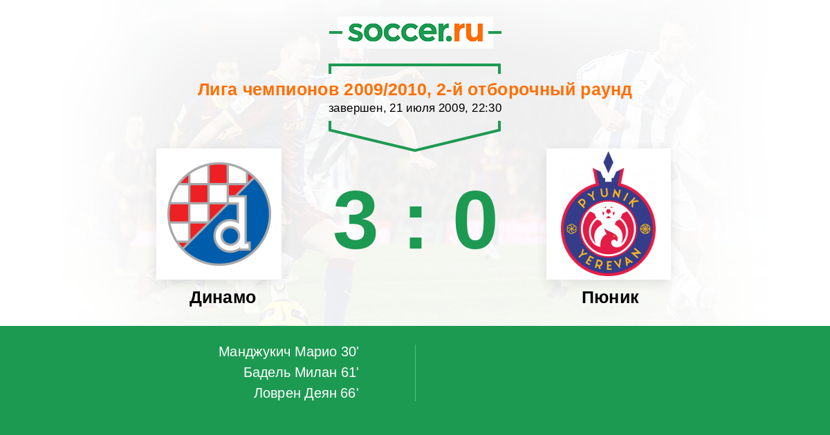 Протокол матча Динамо против Пюник
