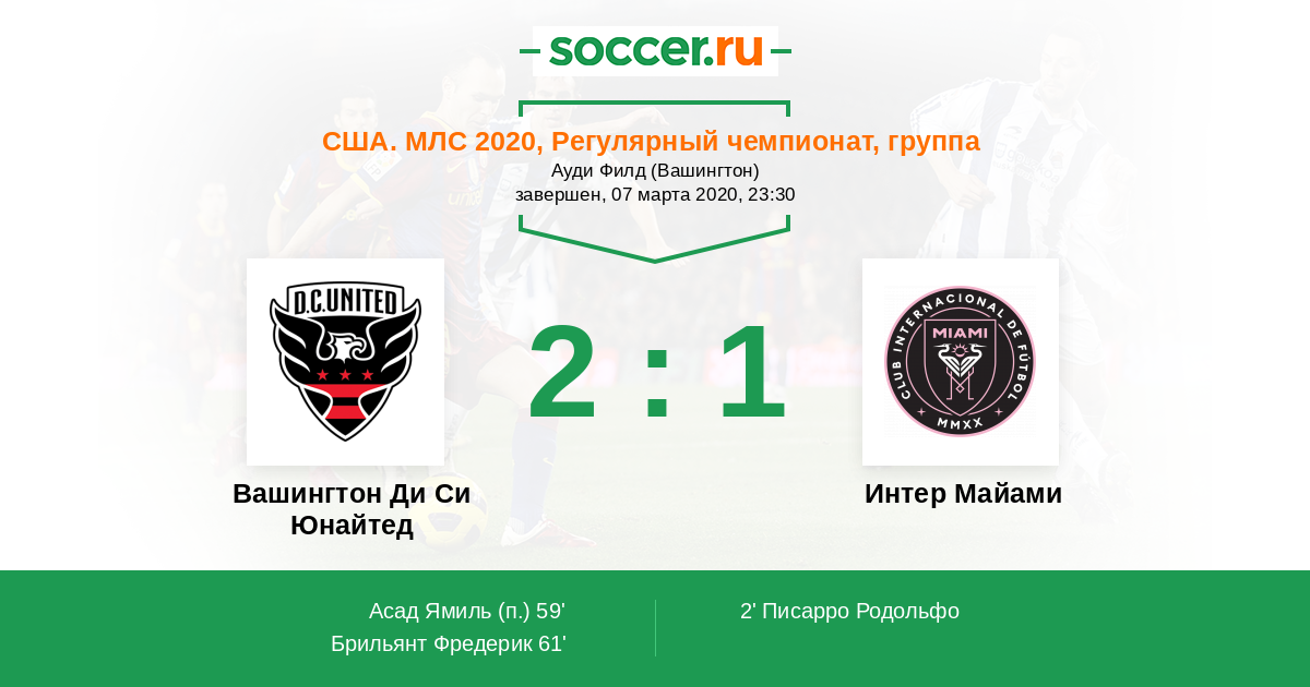 Протокол матча Вашингтон Ди Си Юнайтед против Интер Майами