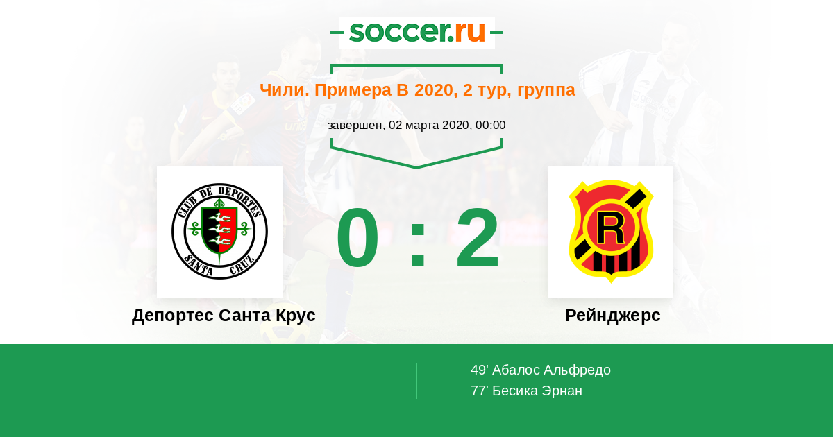 Протокол матча Депортес Санта Крус против Рейнджерс