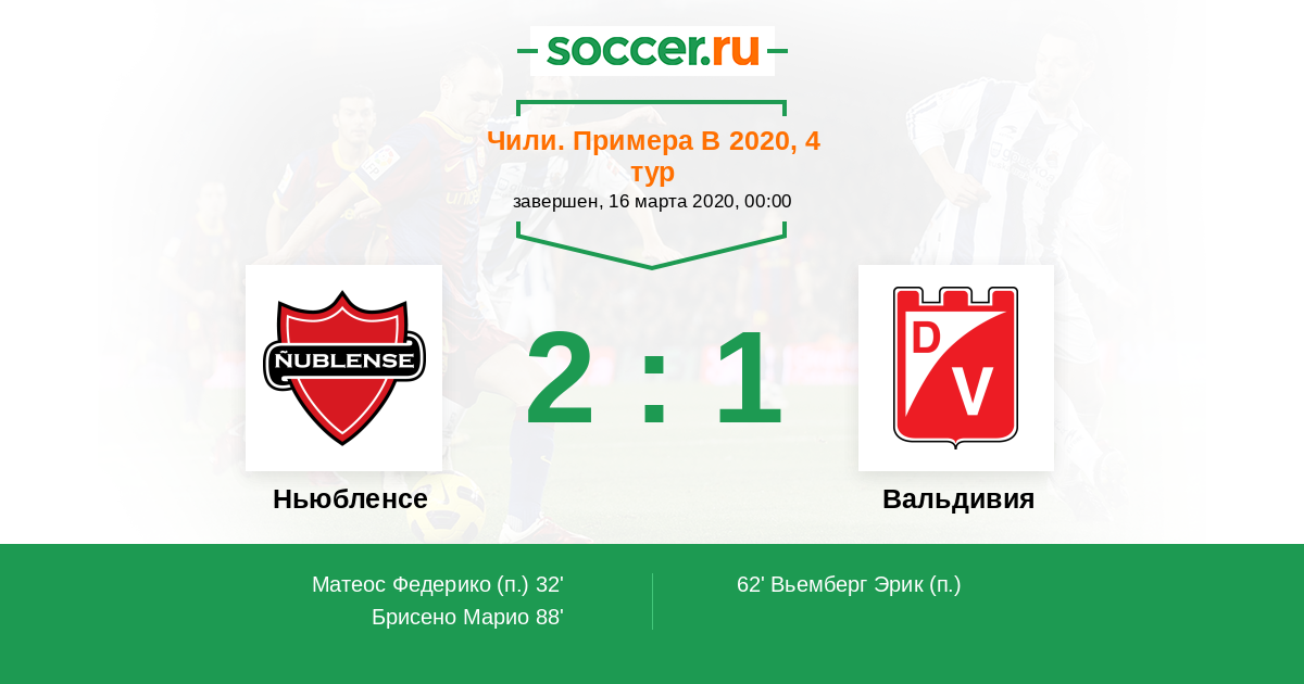 Протокол матча Ньюбленсе против Вальдивия