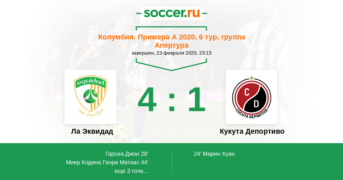 Протокол матча Ла Эквидад против Кукута Депортиво