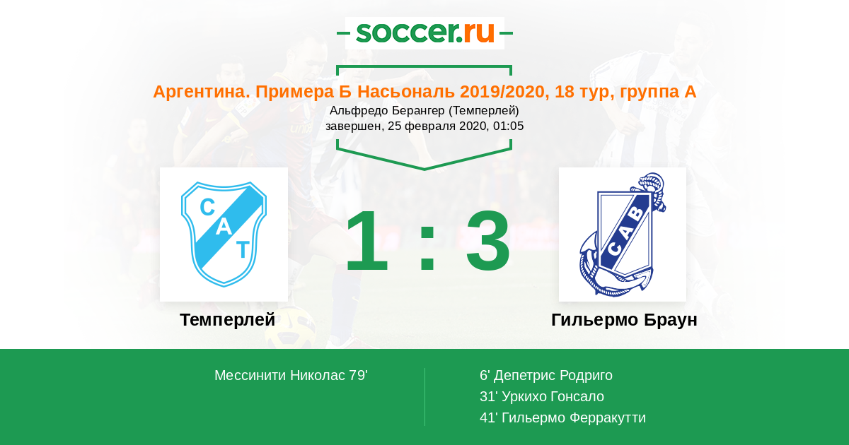 Протокол матча Темперлей против Гильермо Браун