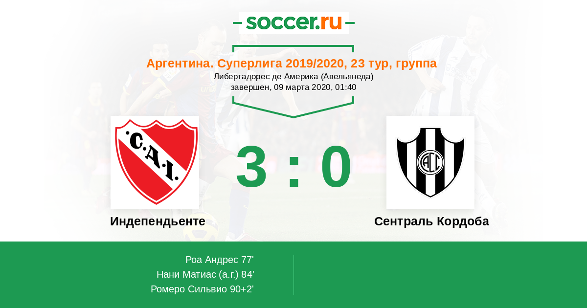 Протокол матча Индепендьенте против Сентраль Кордоба