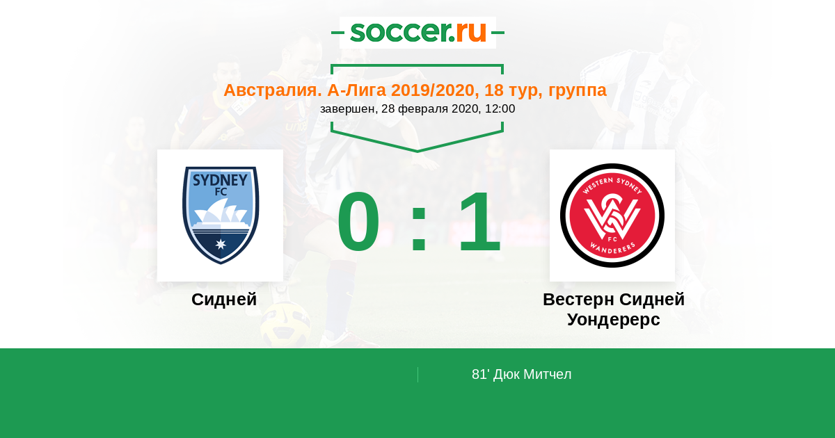 Протокол матча Сидней против Вестерн Сидней Уондерерс
