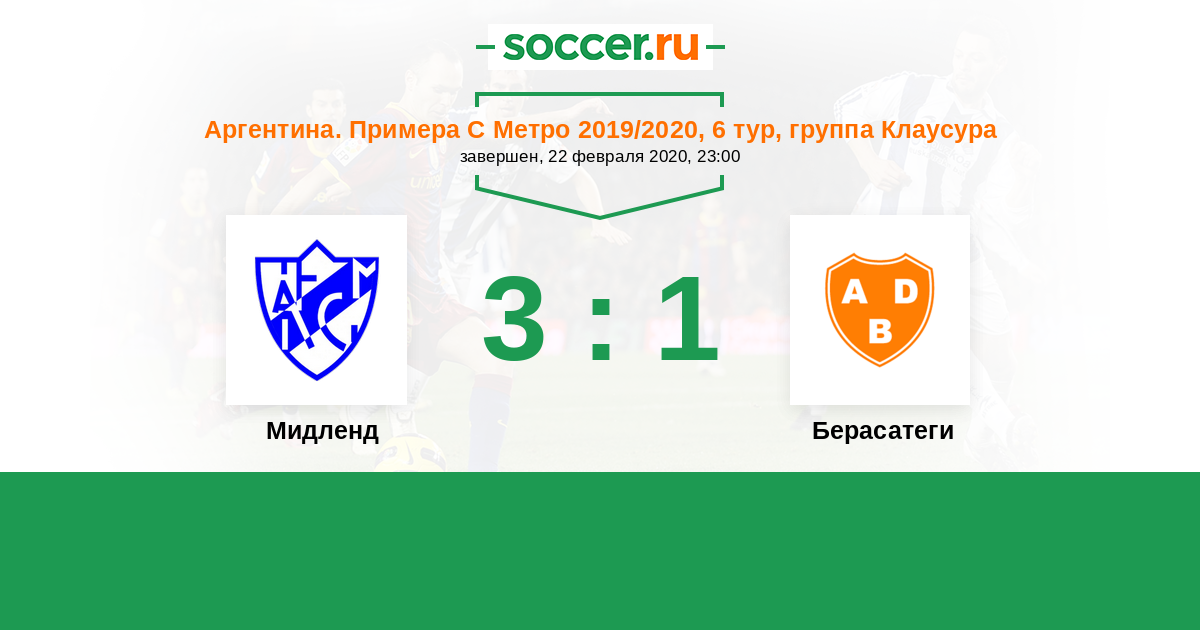Аргентина. Примера С Метро 03.05.2022 Мидленд Логотип футбольный клуб Мидленд (Либертад) 2:0 Логотип футбольный клуб Берасатеги (Буэнос-Айрес) Берасатеги