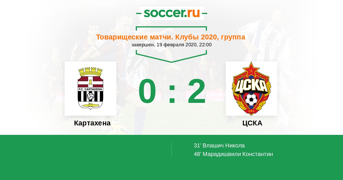 Протокол матча Картахена против ЦСКА