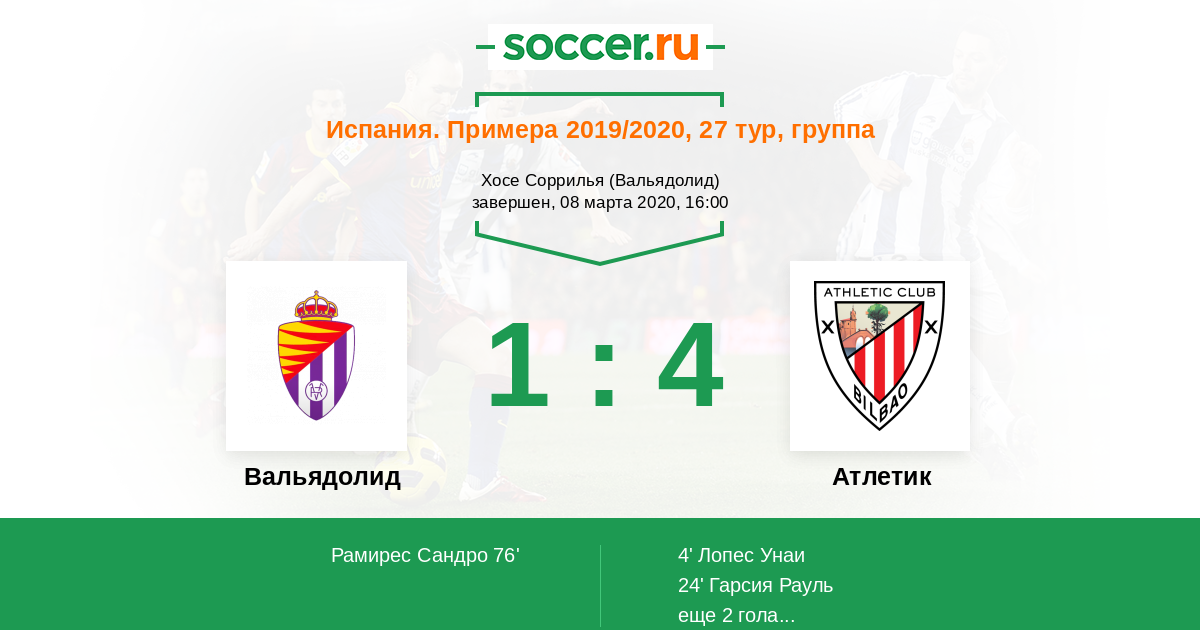 Протокол матча Вальядолид против Атлетик