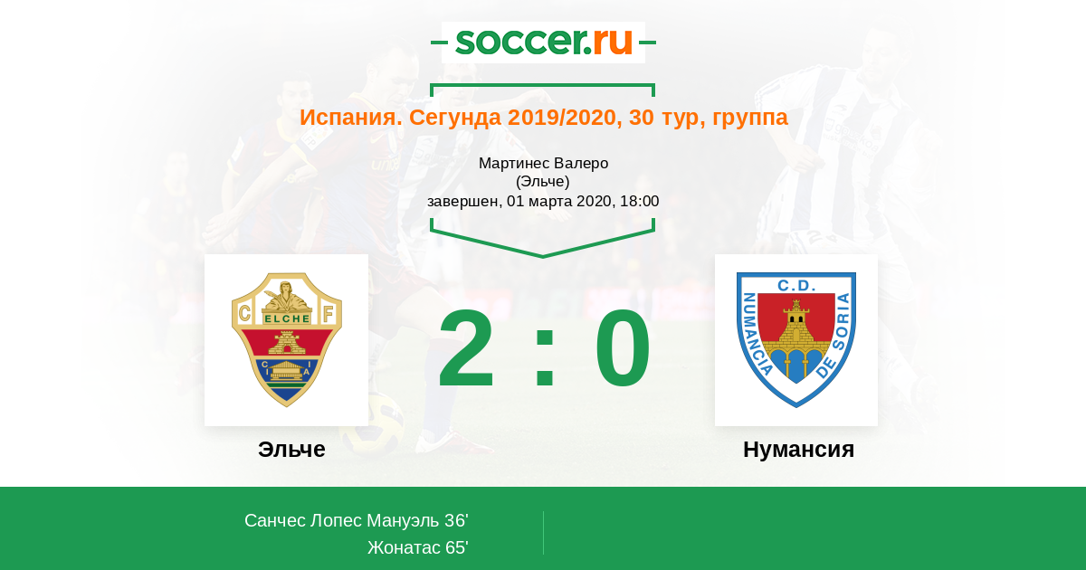 Протокол матча Эльче против Нумансия