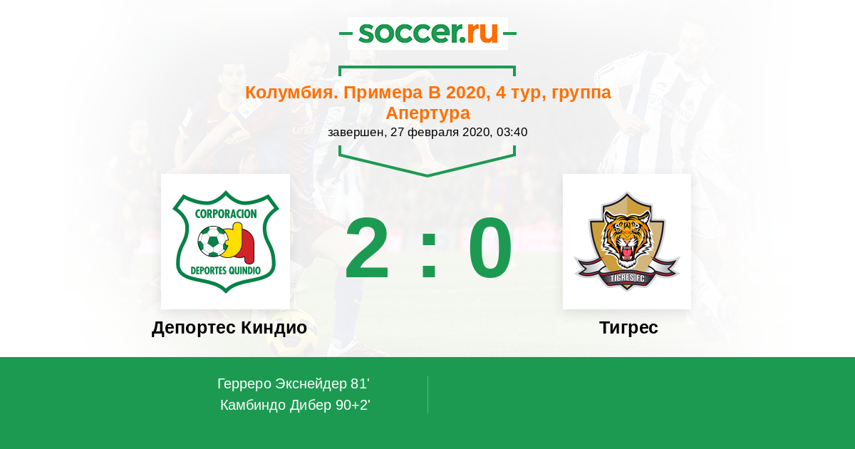 Протокол матча Депортес Киндио против Тигрес