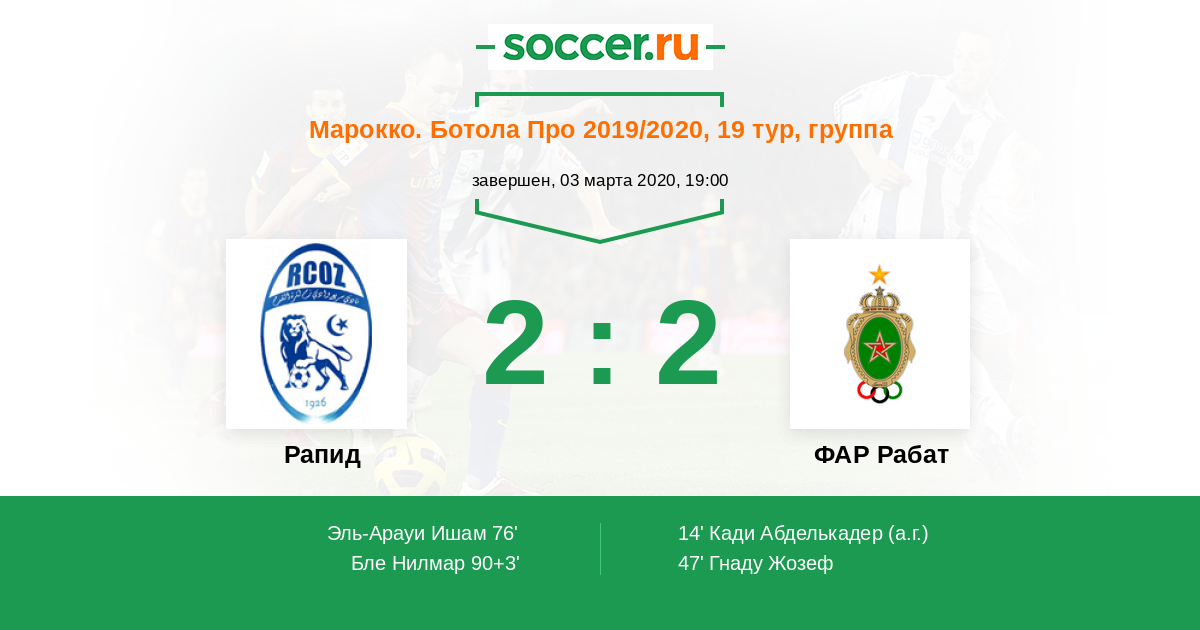 Протокол матча Рапид против ФАР Рабат