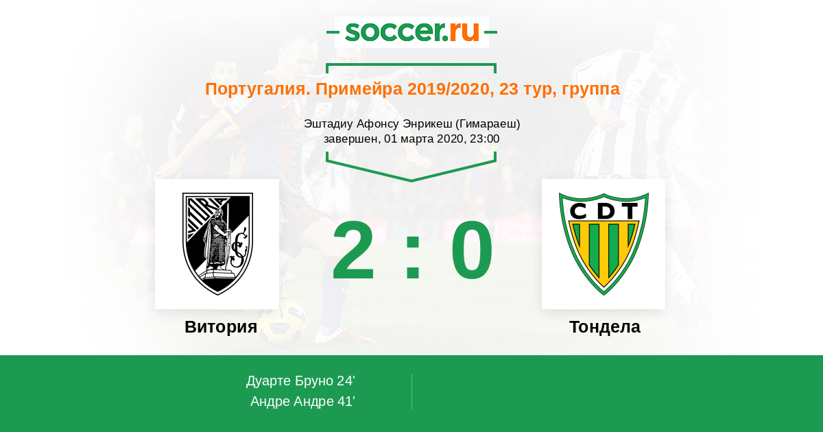Протокол матча Витория против Тондела
