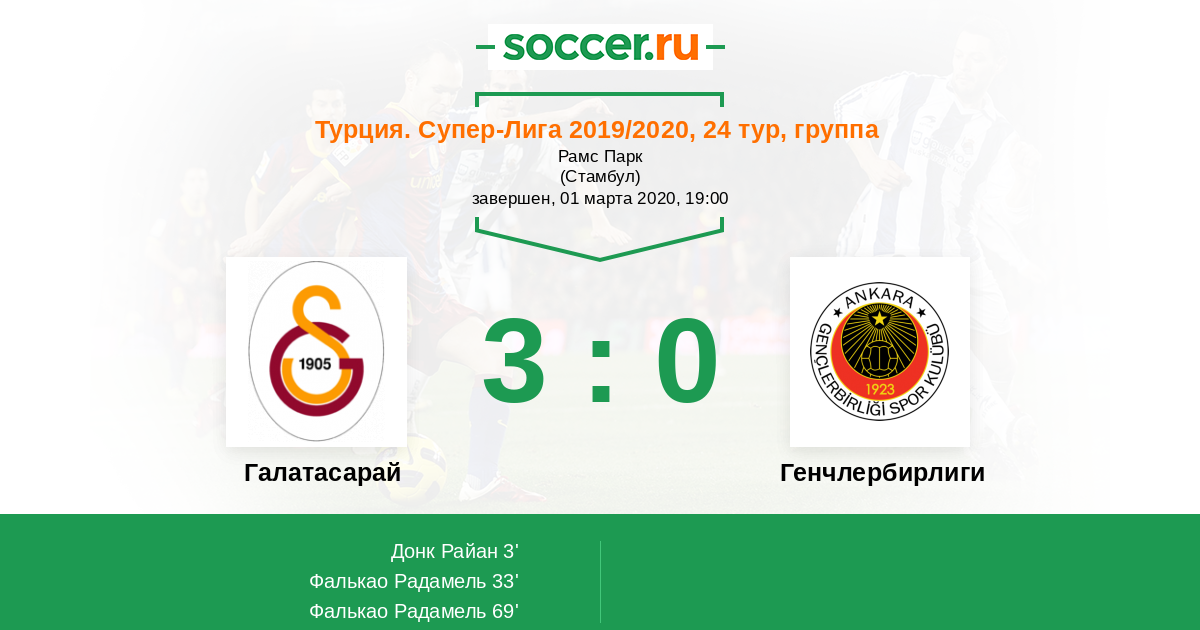 Протокол матча Галатасарай против Генчлербирлиги