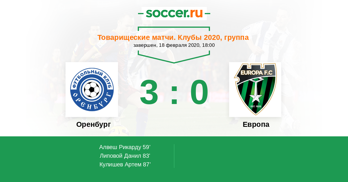 Протокол матча Оренбург против Европа