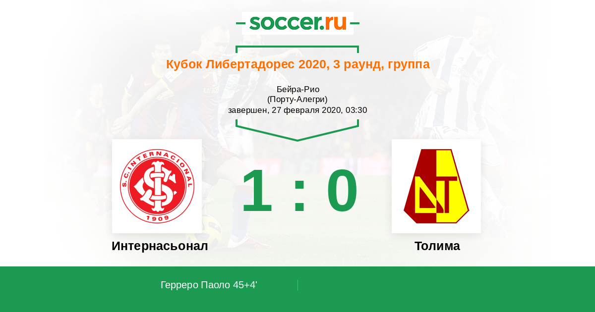45+4' (1:0) Герреро Паоло (9) (Д'Алессандро Андрес (10))