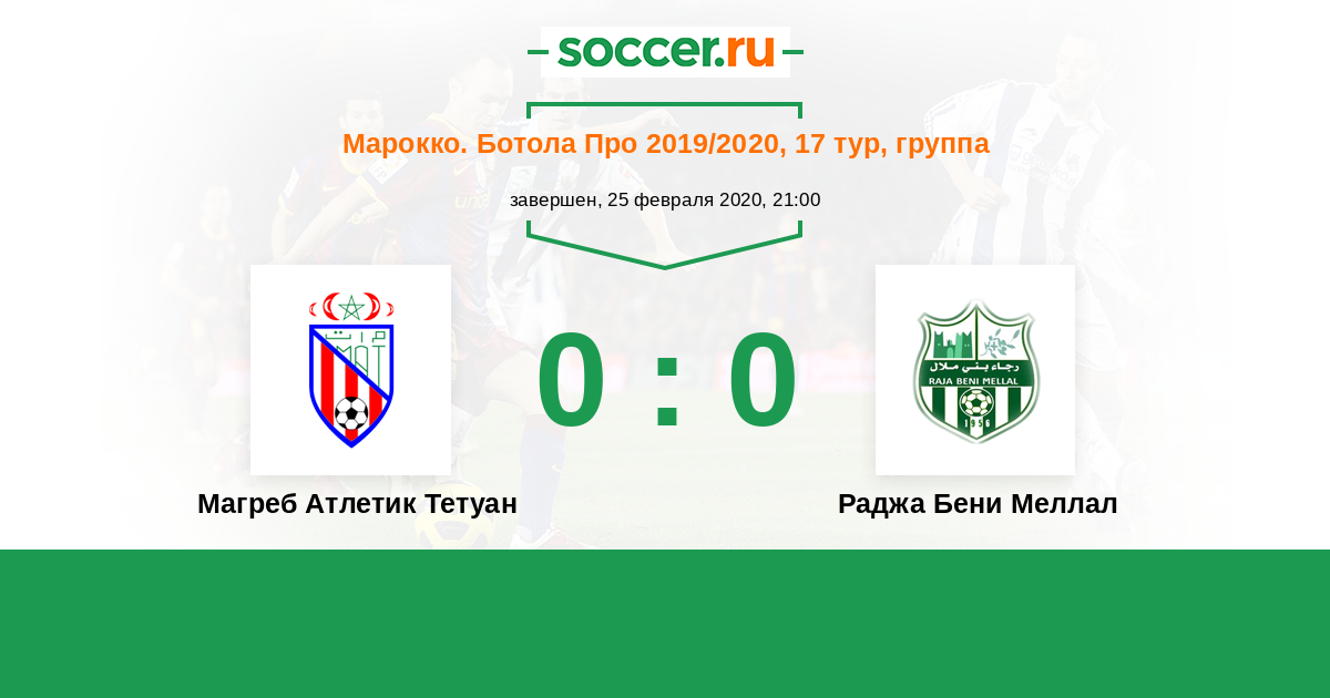 Протокол матча Магреб Атлетик Тетуан против Раджа Бени Меллал