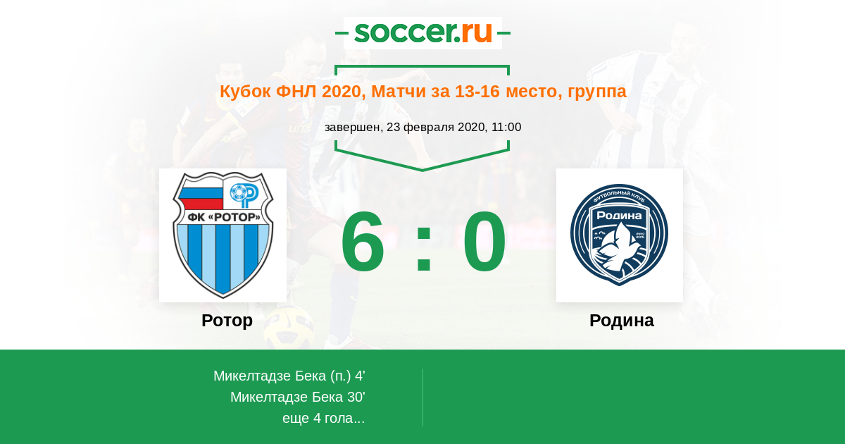 Протокол матча Ротор против Родина