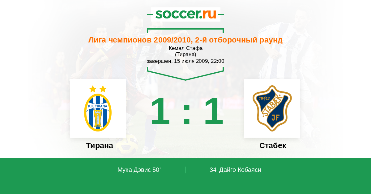 Протокол матча Тирана против Стабек