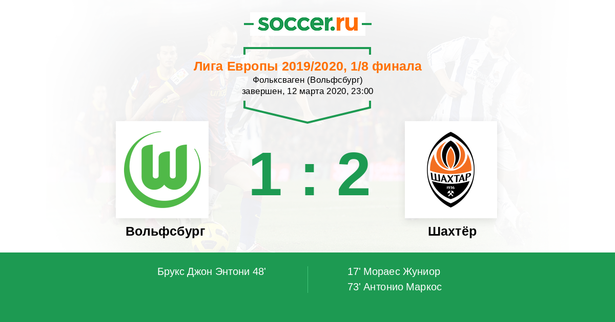Протокол матча Вольфсбург против Шахтёр