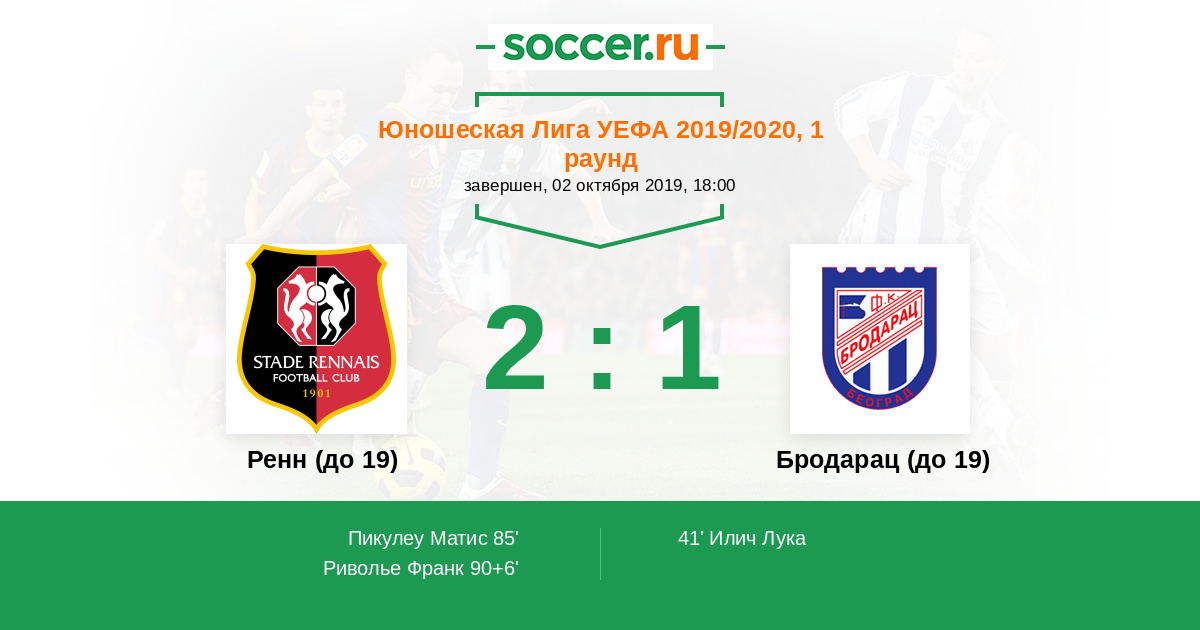 Протокол матча Ренн (до 19) против Бродарац (до 19)