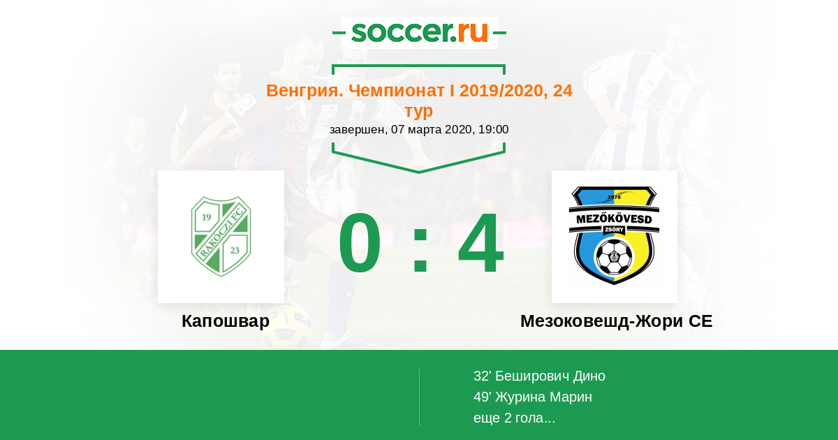 Протокол матча Капошвар против Мезоковешд-Жори СЕ