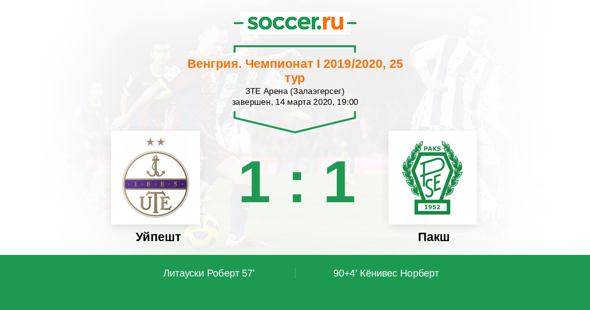 Протокол матча Уйпешт против Пакш