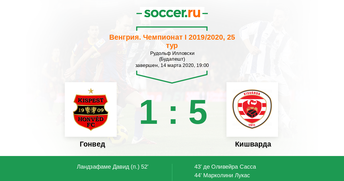Протокол матча Гонвед против Кишварда