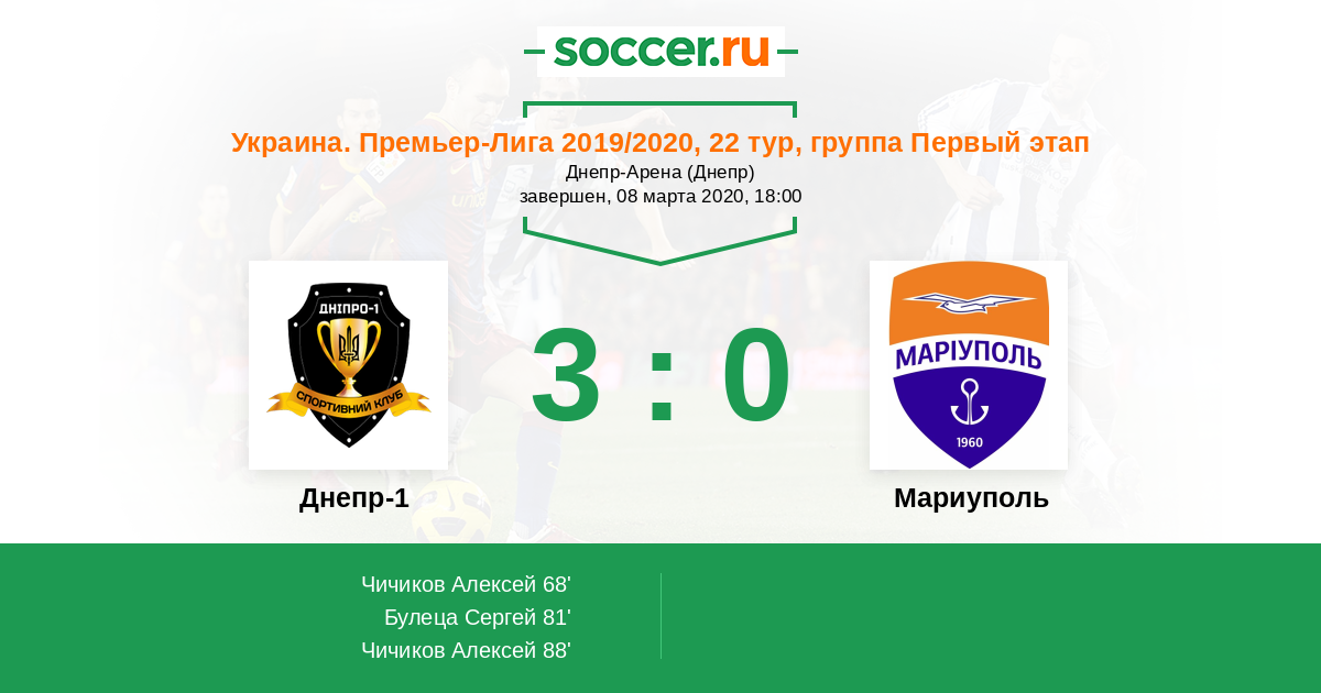 Протокол матча Днепр-1 против Мариуполь