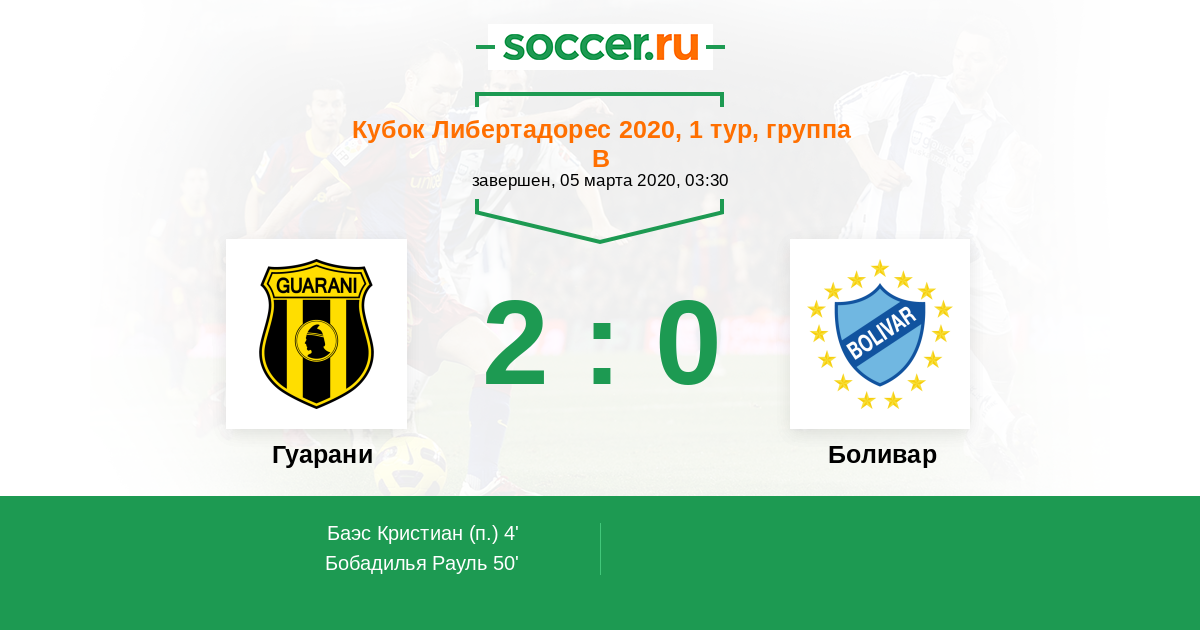 Протокол матча Гуарани против Боливар
