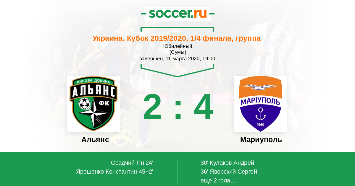 Протокол матча Альянс против Мариуполь