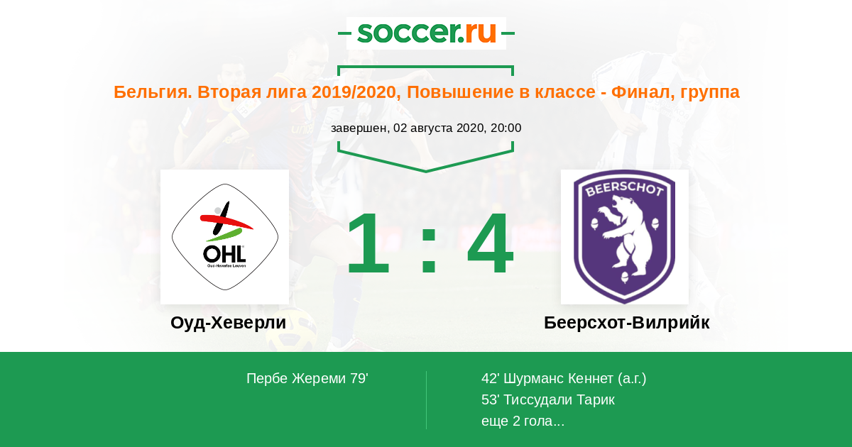 Протокол матча Оуд-Хеверли против Беерсхот-Вилрийк