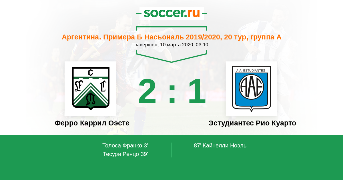 Протокол матча Ферро Каррил Оэсте против Эстудиантес Рио Куарто