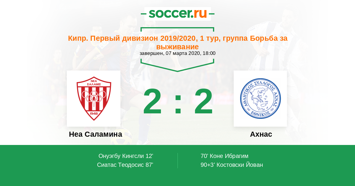 Протокол матча Неа Саламина против Ахнас