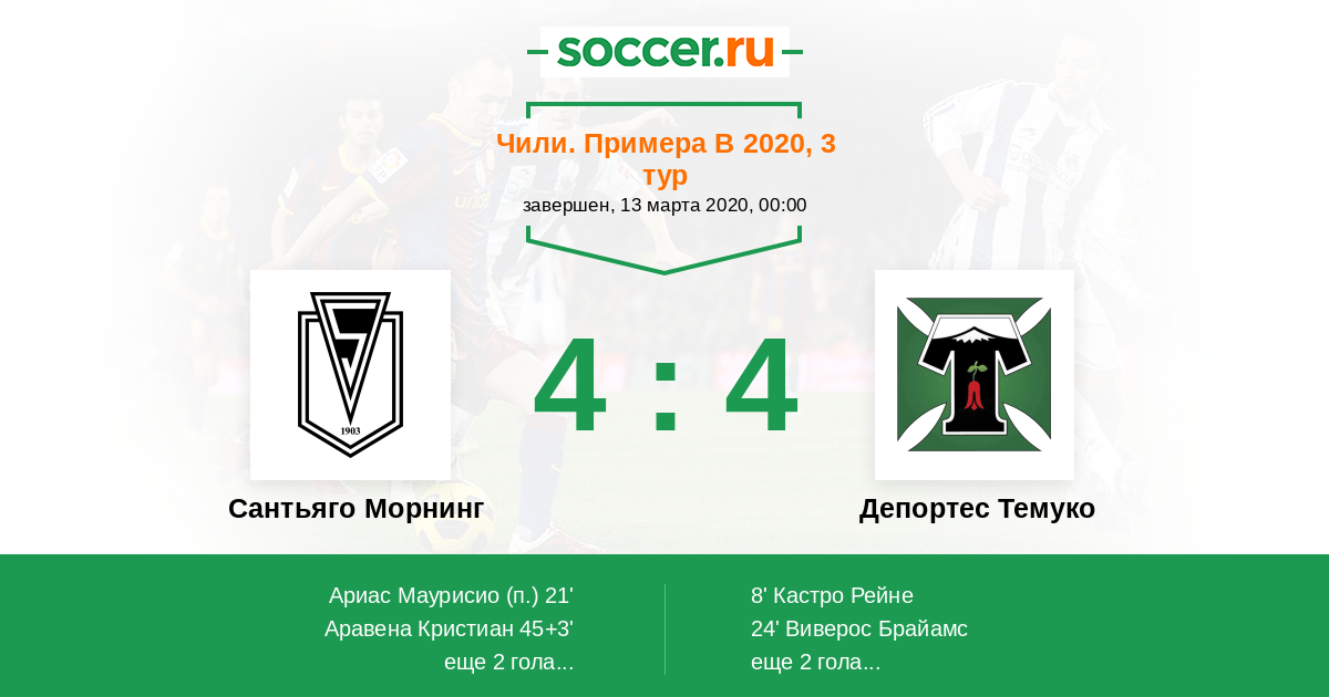 Протокол матча Сантьяго Морнинг против Депортес Темуко